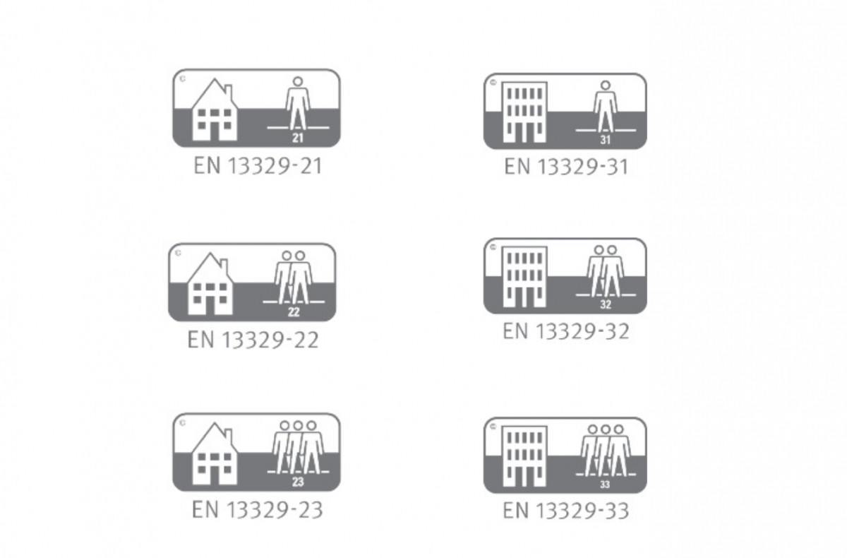 Tieto triedy sa podľa normy EN13329 delia do 7 hlavných tried: 21, 22, 23, 31, 32, 33 a 34. Dnes sú už podlahy v triedach záťaže 21- 23 menej populárne a používajú sa výlučne v obytných priestoroch ( 21- sú vhodné len do miestností s najmenšou prevádzkou ako sú spálne, obývačky, 22- sú vhodné do detských izieb a 23- je možné použiť v chodbe aj v kuchyni). Naopak, podlahy v triedach záťaže 31- 33 patria medzi veľmi vyhľadávané, nakoľko môžu byť používané ako v obytných, tak aj v komerčných priestoroch: