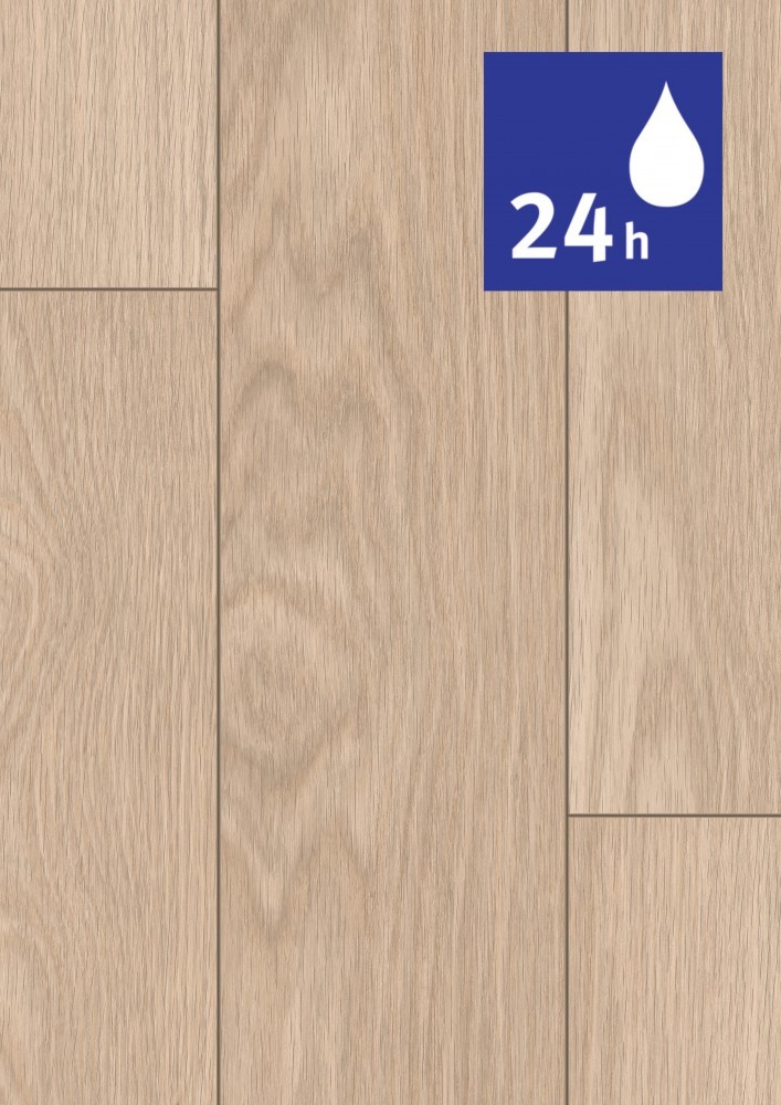 Laminátová podlaha EGGER NatureSense Aqua vyniká vysokou funkčnosťou, je atraktívna a vhodná pre zdravý domov. Vďaka ochrane hrán proti prenikaniu vody v kombinácii s vodeodolným povrchom, inštalačným systémom Aqua Clic it! a nosnou doskou HDF+ na báze dreva je táto laminátová podlaha chránená proti prenikaniu vody po dobu 24 hodín. Podlaha NatureSense Aqua je skutočne všestranná a je možné ju použiť aj v kuchyniach a v súkromných kúpeľniach.