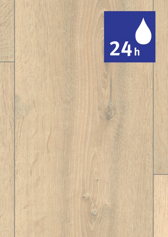 Laminátová podlaha EGGER NatureSense Aqua vyniká vysokou funkčnosťou, je atraktívna a vhodná pre zdravý domov. Vďaka ochrane hrán proti prenikaniu vody v kombinácii s vodeodolným povrchom, inštalačným systémom Aqua Clic it! a nosnou doskou HDF+ na báze dreva je táto laminátová podlaha chránená proti prenikaniu vody po dobu 24 hodín. Podlaha NatureSense Aqua je skutočne všestranná a je možné ju použiť aj v kuchyniach a v súkromných kúpeľniach.