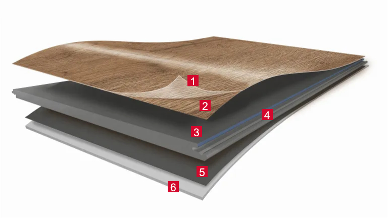- Tmavá nosná doska HDF Aqua+ na báze dreva so špeciálnym tesnením pre maximálnu ochranu proti napučaniu